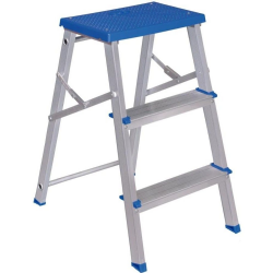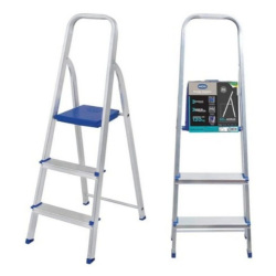ESCADA 3 DEGRAUS EM ALUMINIO SUPORTA ATE 120KG - MORCapacidade máxima de 120 kg para maior segurança e estabilidade.Altura máxima da escada de 1.12 m para alcançar lugares altos.Estrutura em plástico leve e fácil de manobrar.Degraus antiderrapantes que garantem segurança ao subir.Escada dobrável, facilitando o armazenamento e transporte.Inclui plataforma para suporte adicional durante o uso.
