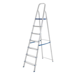 ESCADA 7 DEGRAUS EM ALUMINIO SUPORTA ATE 120KG - MORCom capacidade para 120 kg, a Escada 5105 de Alumínio 7 Degraus da Mor é leve, dobrável e fácil de guardar, perfeita para consertos e manutenção doméstica. Possui duas fitas de travamento, além do travamento automático na plataforma superior, proporcionando ainda mais estabilidade durante sua utilização. São fabricadas com estrutura em tubos e chapas de alumínio produzido na Mor, o que garante melhor qualidade estrutural ao produto, pois há controle de todo processo de fabricação. Além disso, o alumínio é um material leve e durável mesmo em áreas litorâneas. As peças plásticas da escada são feitas de polipropileno de alta resistência. Além disso, seus pés antiderrapantes e travamento automático na plataforma superior garantem maior estabilidade.