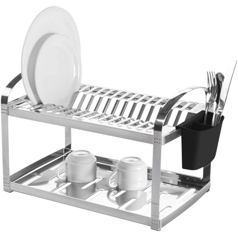 Possui uma parte superior, perfeita para pratos de diferentes tamanhos e uma base reta especialmente desenhada para acomodar com segurança copos, xícaras e demais itensO produto inclui, ainda, um porta-talheres em plástico que pode ser facilmente encaixado no corpo do escorredorO modelo é totalmente feito em aço inox, o que o torna muito resistente e fácil de limparAlém de durável, o escorredor de pratos Inox da linha Suprema tem acabamento alto brilho e design arrojado, que adiciona requinte à sua decoração